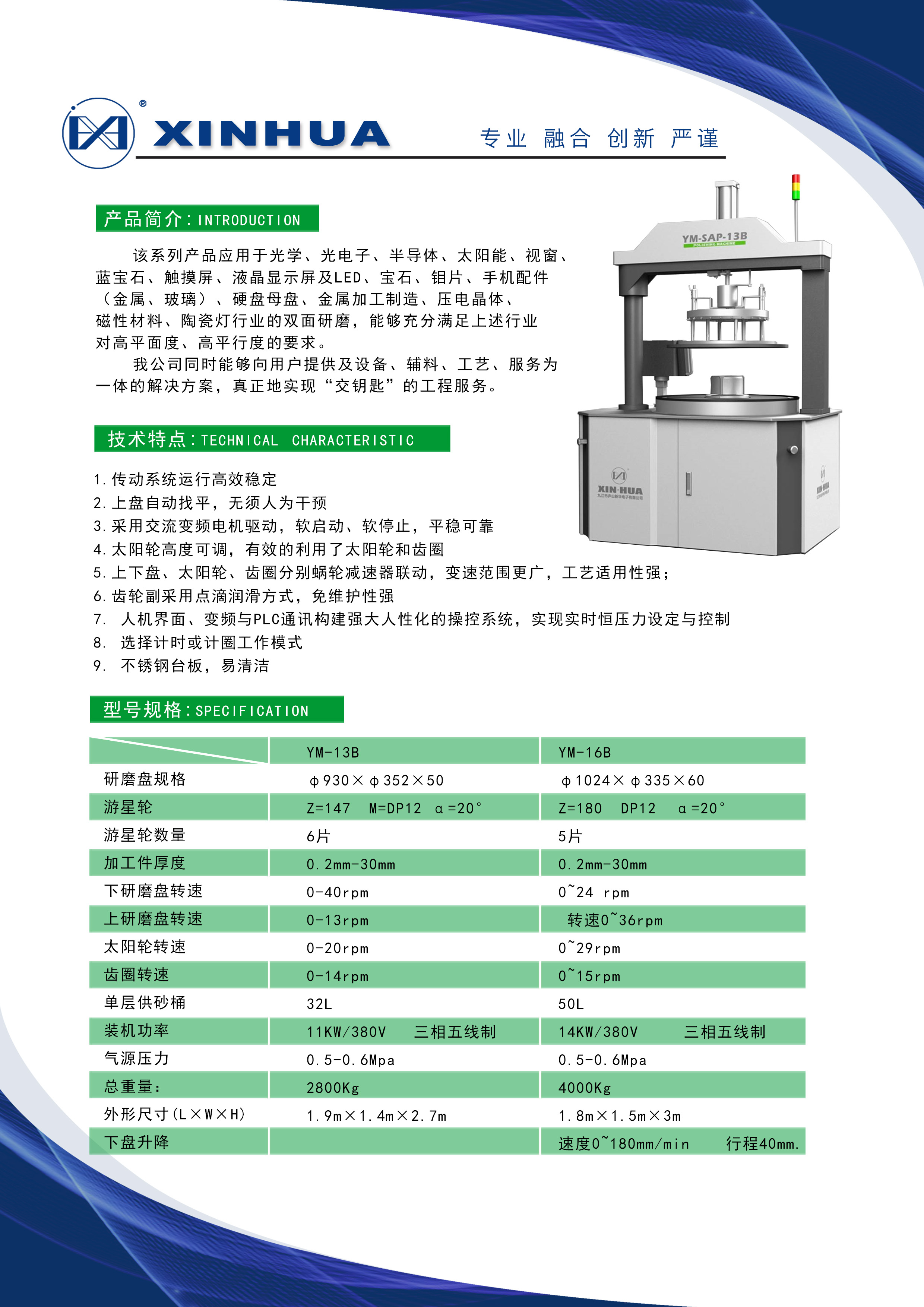該系列產(chǎn)品應(yīng)用于光學(xué)、光電子、半導(dǎo)體、太陽能、視窗、藍(lán)寶石、觸摸屏、液晶顯示屏及LED、寶石、鉬片、手機(jī)配件(金屬、玻璃)、硬盤母盤、金屬加工制造、壓電晶體、磁性材料、陶瓷燈行業(yè)的雙面研磨,能夠充分滿足上述行業(yè)對(duì)高平面度、高平行度的要求。